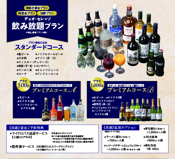 【飲み放題プランはスンダードコース 全て税・サービス料込み】